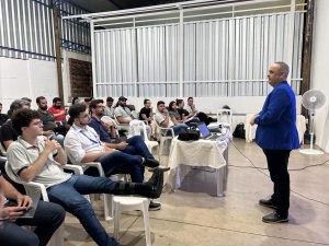 A aula inaugural do curso Formação de Lideranças da Versa aconteceu nesta quarta-feira, dia 1°, na sede da empresa, no bairro Limoeiro. A capacitação para o desenvolvimento de soft skills, ou seja, habilidades comportamentais desejáveis para o mercado de trabalho, está estruturada em sete módulos, com conteúdo programático focado na administração de conflitos, organização do tempo e trabalho em equipe, entre outros. Durante os dois meses de estudo, a turma deve passar por atividades práticas e simulações para a aplicação dos conceitos aprendidos, além de avaliações periódicas.