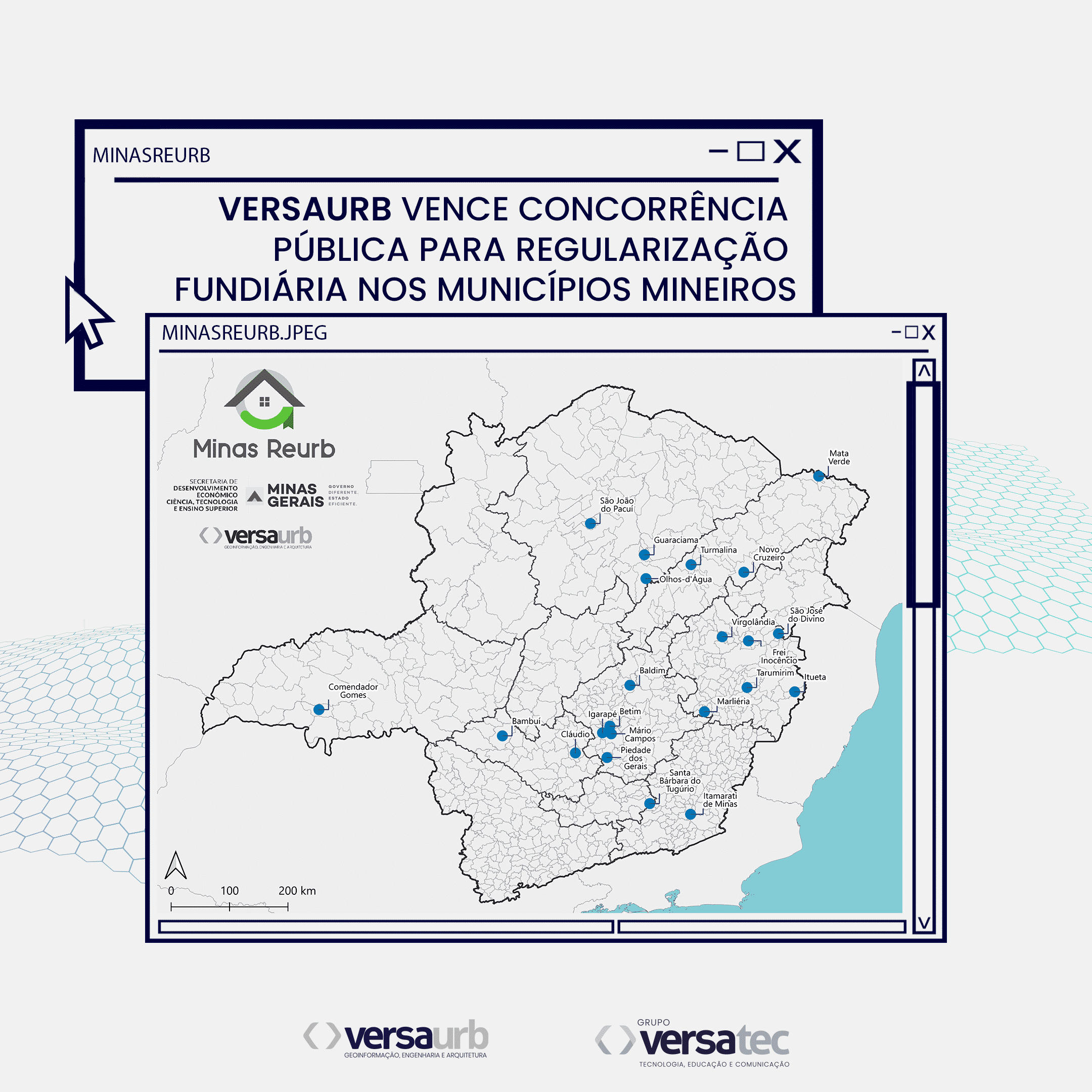 A empresa caratinguense Versaurb – Geoinformação, Engenharia e Arquitetura Ltda, do bairro Limoeiro, foi a vencedora da concorrência e com o encaminhamento de ordem de serviço para iniciar a execução do projeto. Entre as licitantes concorrentes do processo licitatório do Minas Reurb, estiveram grandes instituições de ensino e pesquisa, como a Fundação Israel Pinheiro (FIP), e grandes empresas de engenharia, como a NMC Consultoria e Geoline Engenharia.